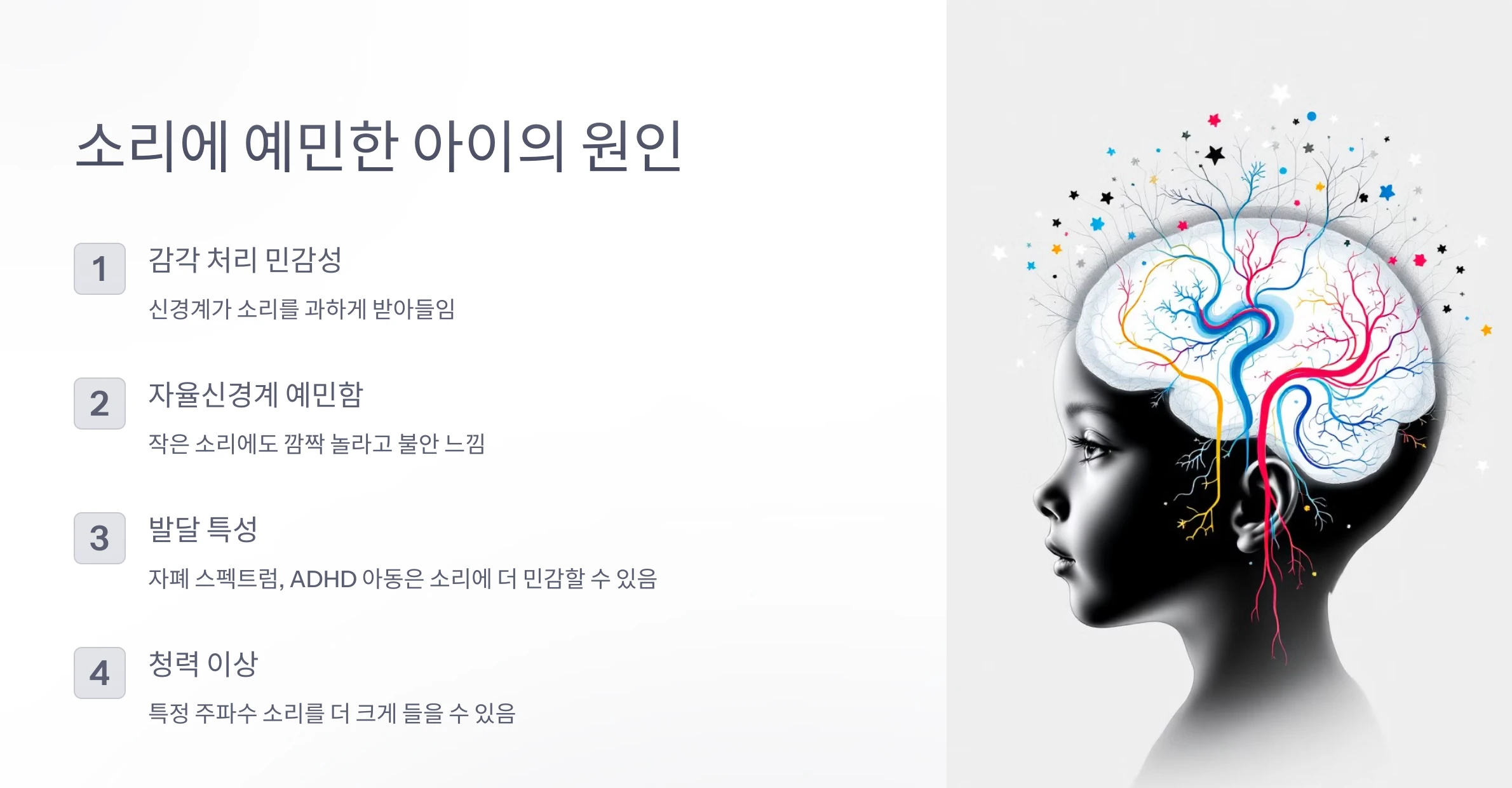 📌 소리에 민감한 아이들은 종종 불안감이 높은 경우가 많아요.