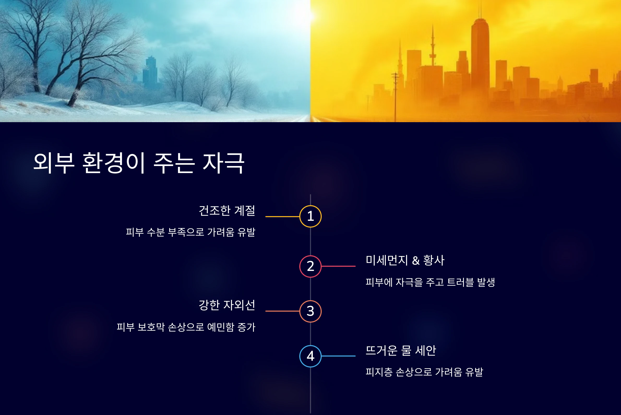 ✔️ 미세먼지 & 황사: 피부에 자극을 주고 트러블 발생
