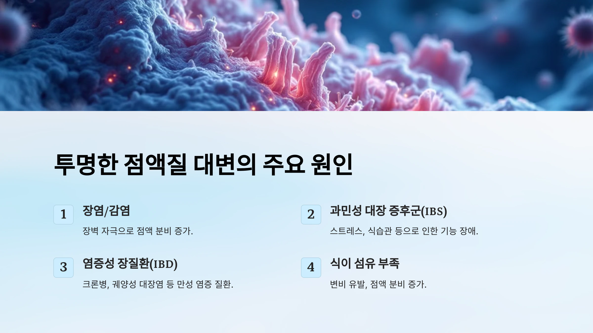 🔍 투명한 점액질 대변의 주요 원인