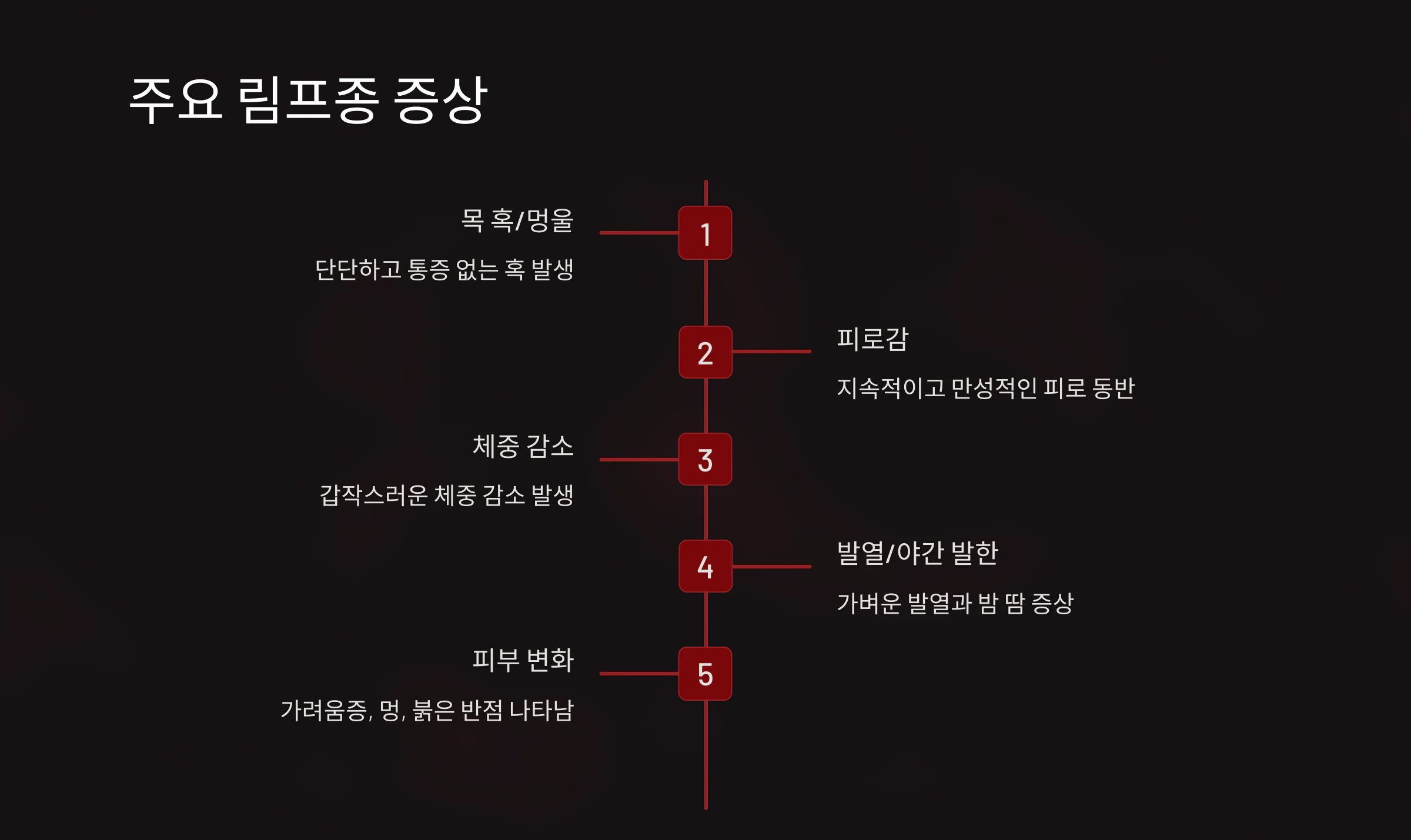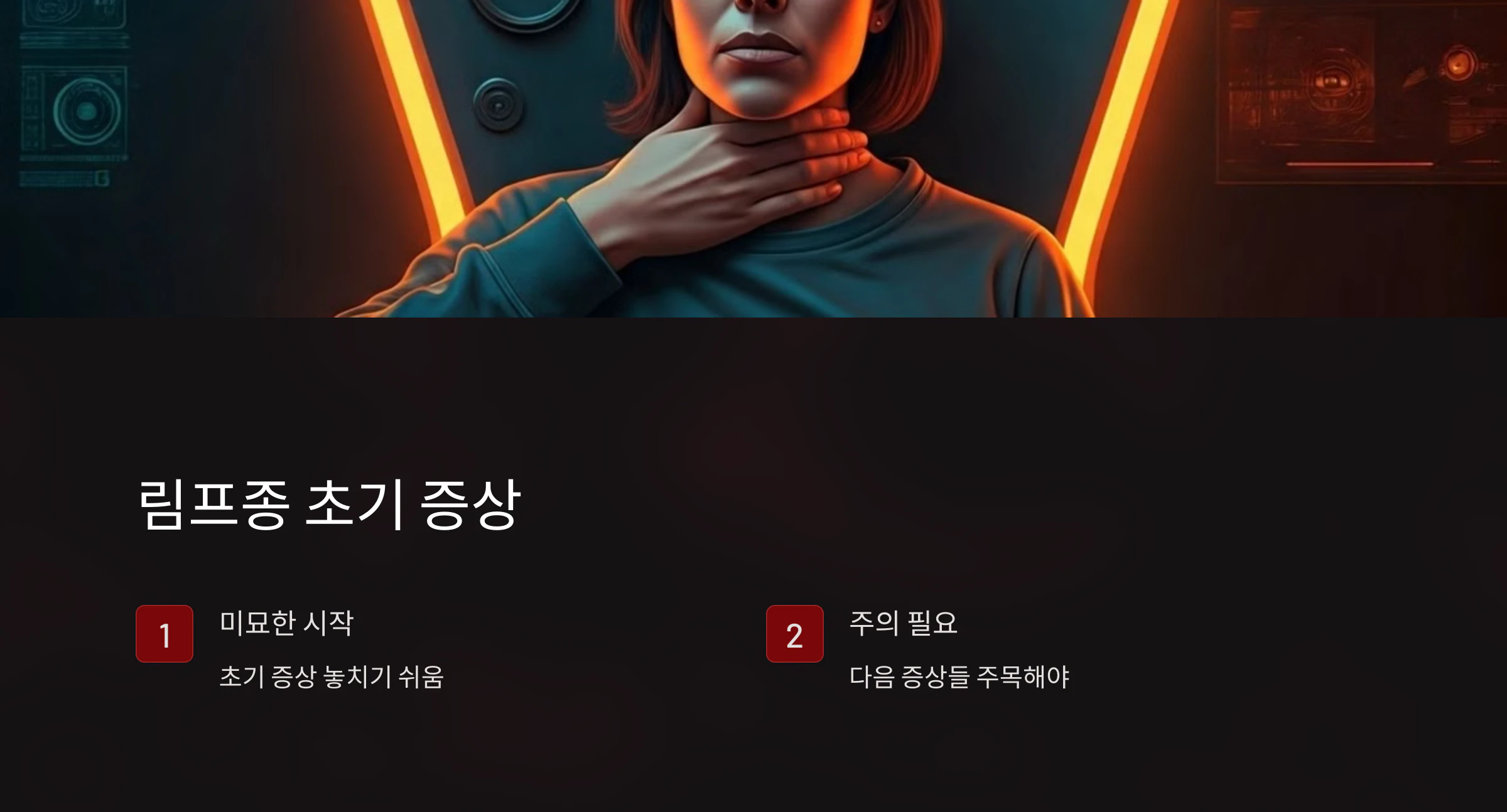 림프종의 초기 증상은 매우 미묘하게 시작되는 경우가 많아 놓치기 쉽습니다. 다음은 주요 증상들입니다: