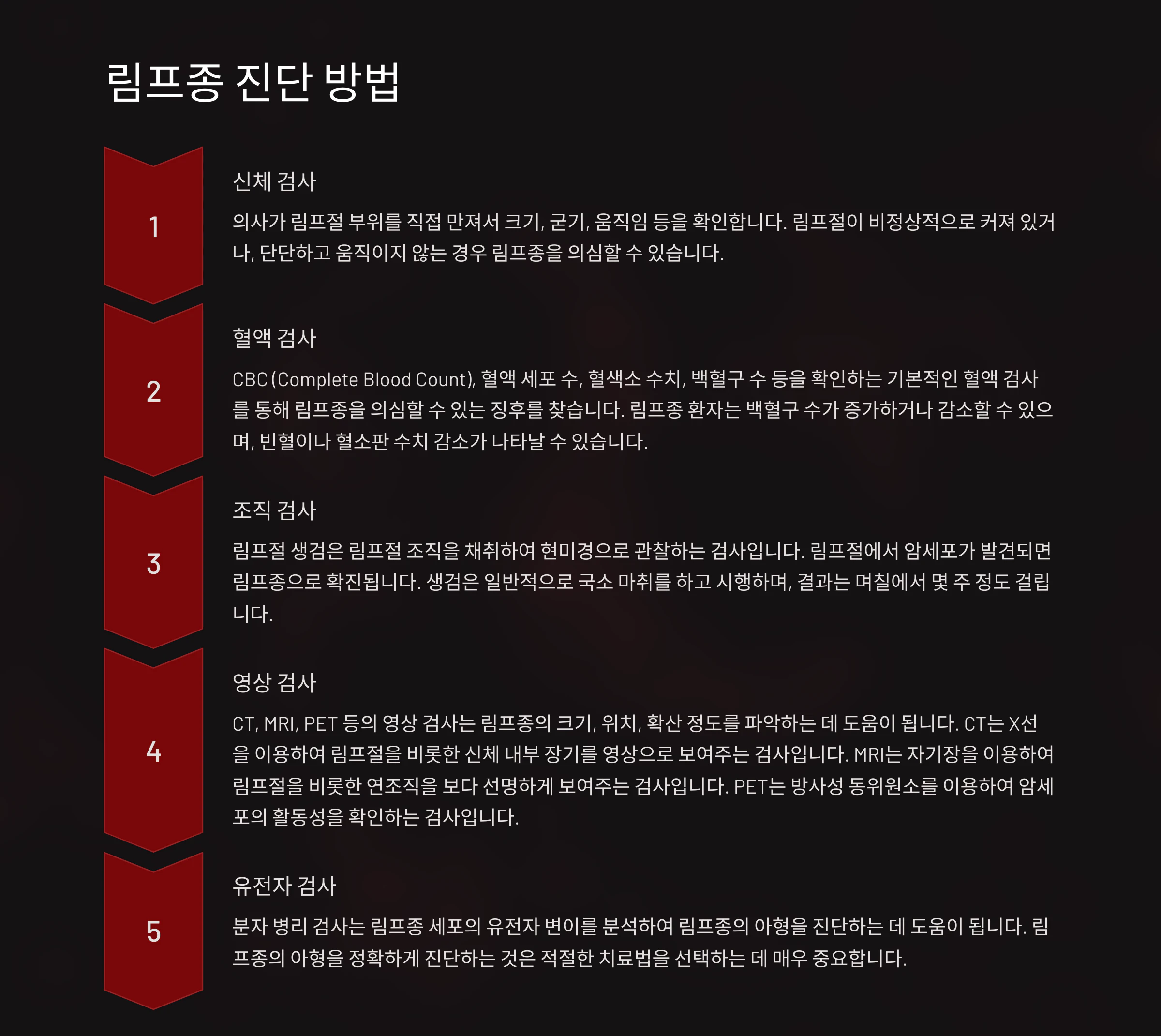 림프종의 진단은 일반적으로 단계적으로 이루어집니다. 병원을 방문하여 정확한 진단을 받는 것이 가장 중요합니다.