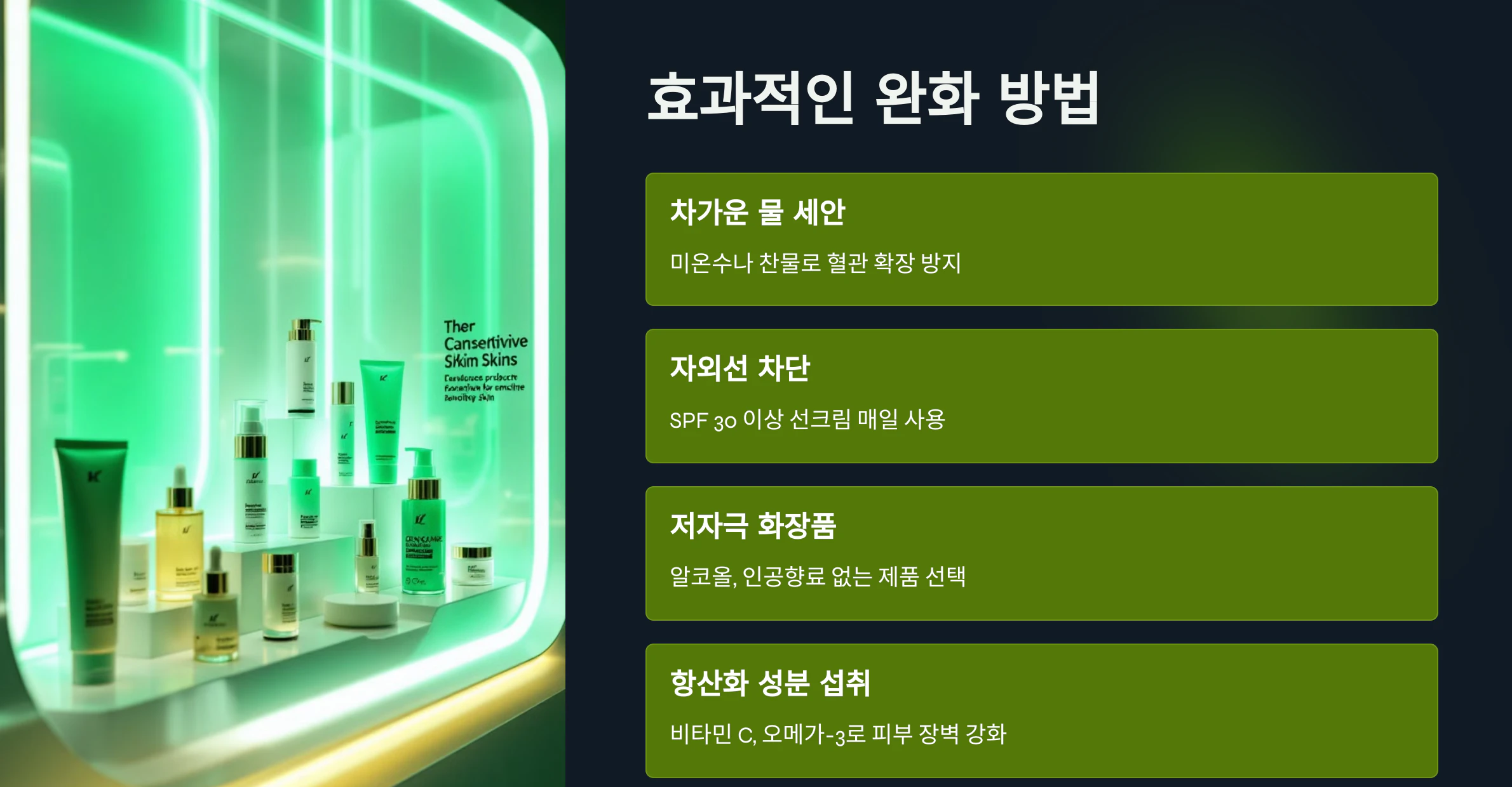 🔹 저자극 화장품 사용 – 알코올, 인공향료가 없는 제품을 선택하세요.