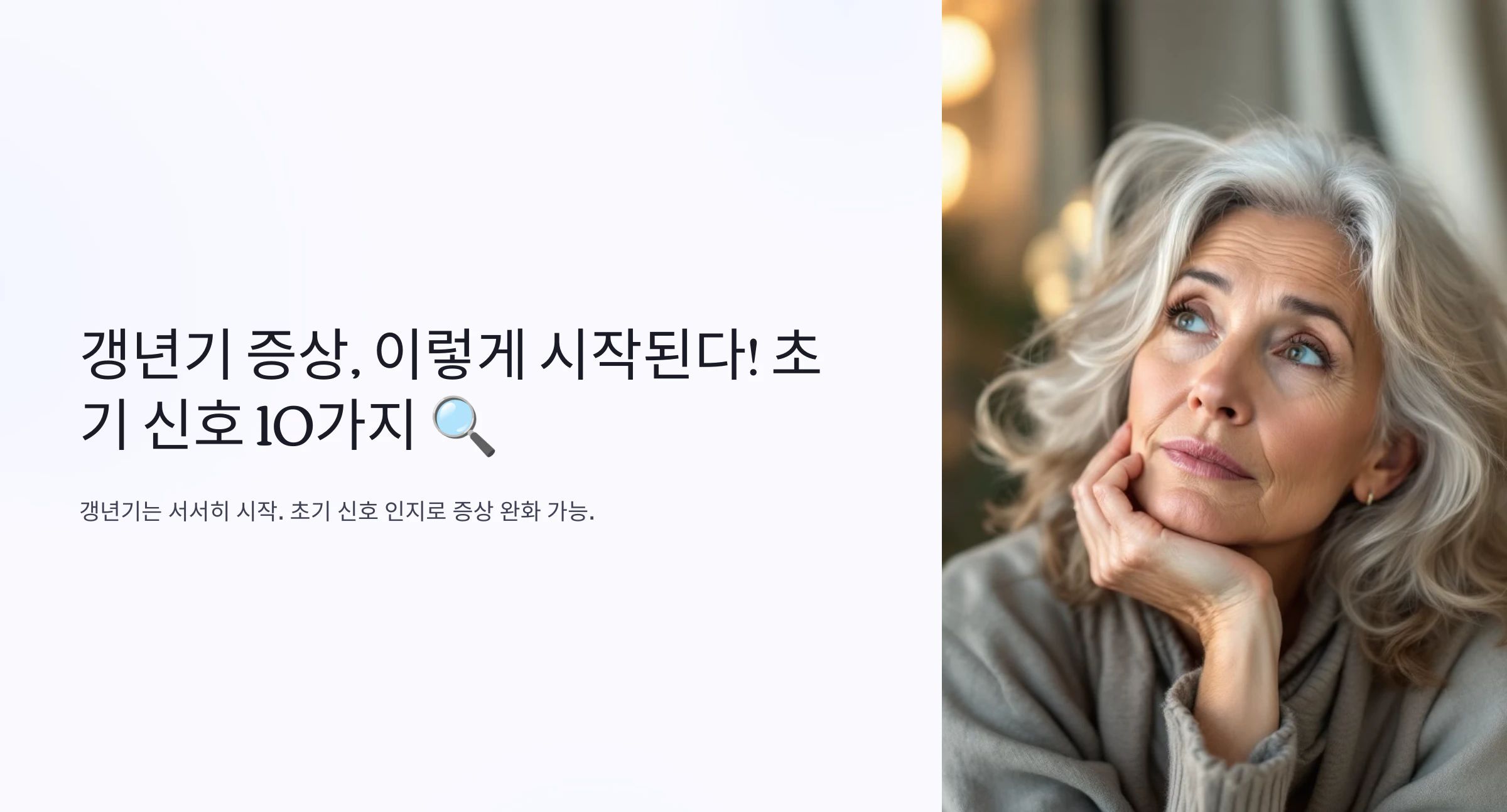 갱년기는 어느 날 갑자기 찾아오는 것이 아니라, 서서히 시작됩니다. 하지만 초기 신호를 알아차리고 대비하면 증상을 완화하고 건강한 삶을 유지할 수 있어요. 오늘은 갱년기의 초기 증상 10가지를 소개해 드릴게요!