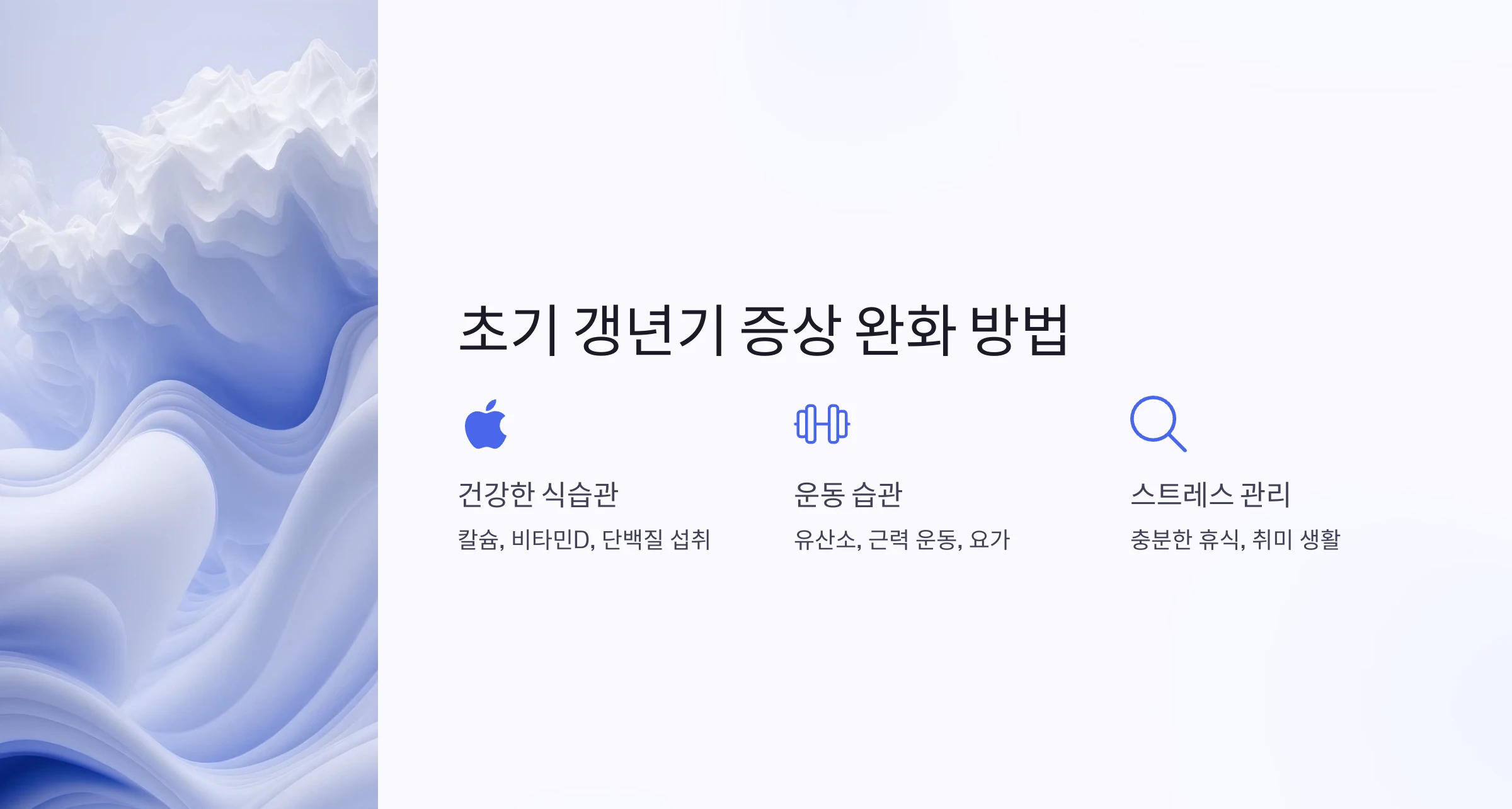 갱년기는 끝이 아니라 새로운 시작이에요! 🥰 건강한 습관을 통해 행복하고 활기찬 갱년기를 맞이하세요!